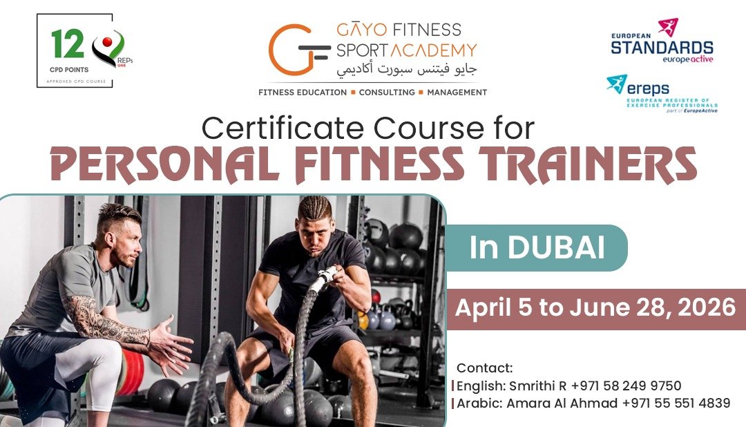 Certificate Course in Personal Fitness Trainers (CCPFT) INTRODUCTION Our personal trainer course is –Approved REPS UAE Category “A”Level 4, European Standards – European Register of Exercise Professionals (EREPS)Priced lowest in […]