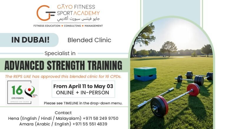 This course is part of the syllabus of our personal trainer course which is approved by REPS UAE and is Level 4 European Standards – EREPS, Brussels.
