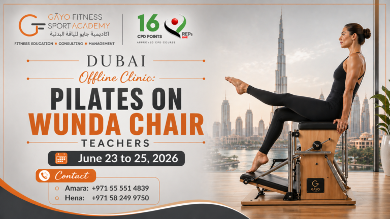 - GĀYO FITNESS SPORTS ACADEMY Pilates on Chair Teacher – approved for 16 REPS UAE CPDs